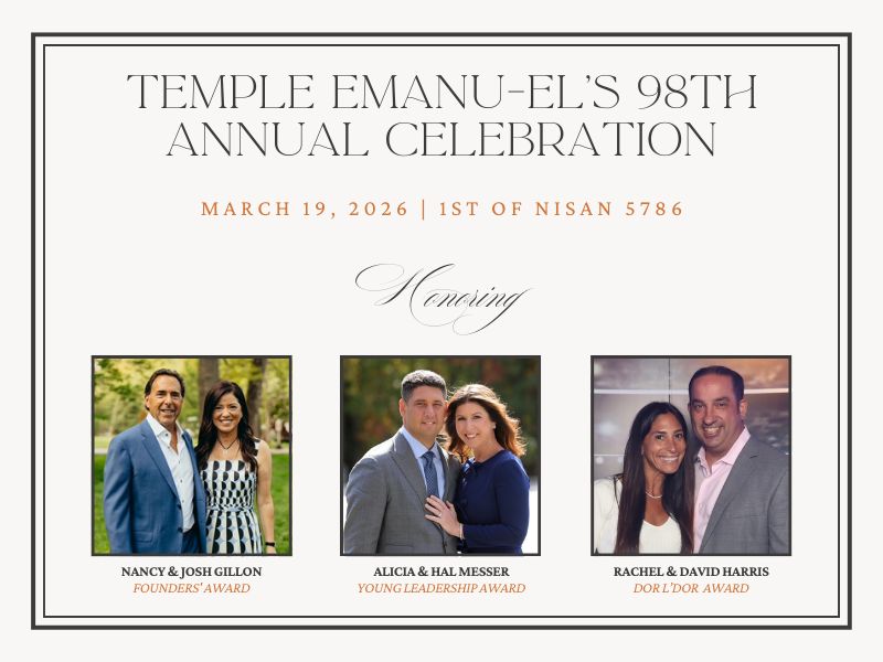 If you are in search of community, a deeper connection to God, want to explore Jewish history or connect closer with Zionism, Temple Emanu-El is the place for you. Together you can share in the beauty and wisdom of our tradition with your children and grandchildren, participate in Tikkun Olam, and experience the meaningful mile markers on life’s journey that connect us to our rich past and our limitless future. Temple Emanu-El is your home.