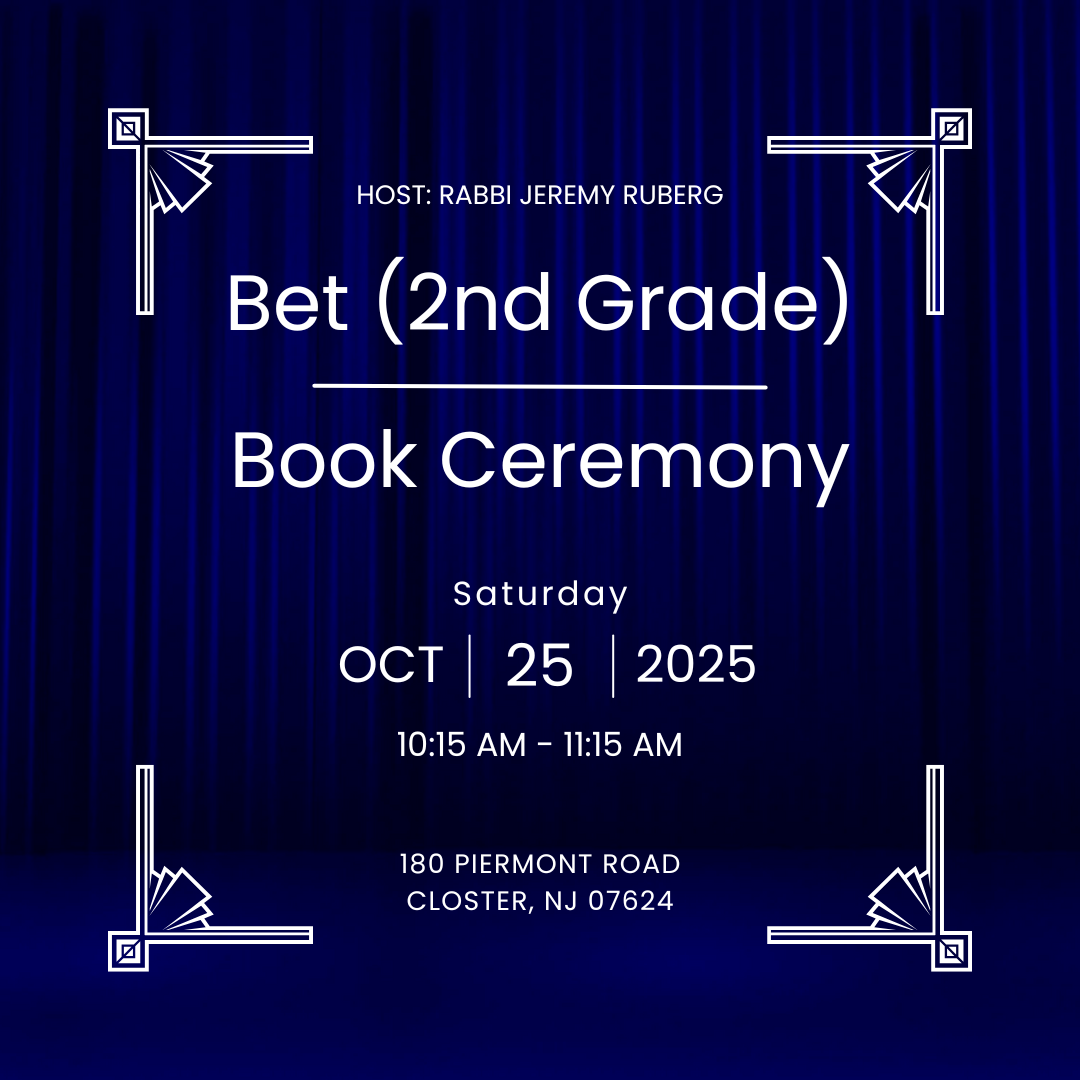 Join us for a special family shabbat program and service in the Daily Chapel followed by a book presentation. Each Bet student will receive his/her own special prayerbook. We intend to finish by around 11:15 AM. We look forward to celebrating this special occasion with our students and their families!