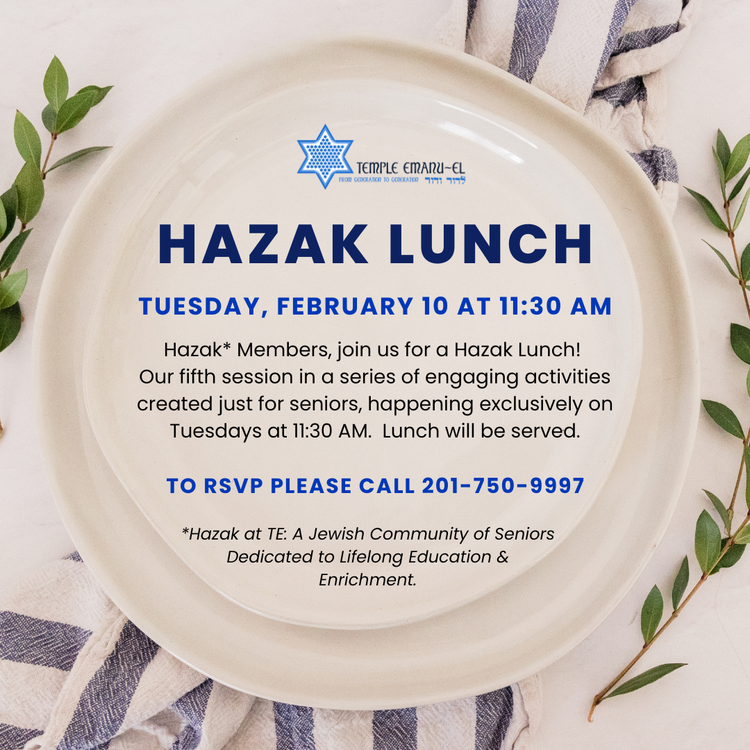 Hazak* Members, join us for a Hazak Lunch!
