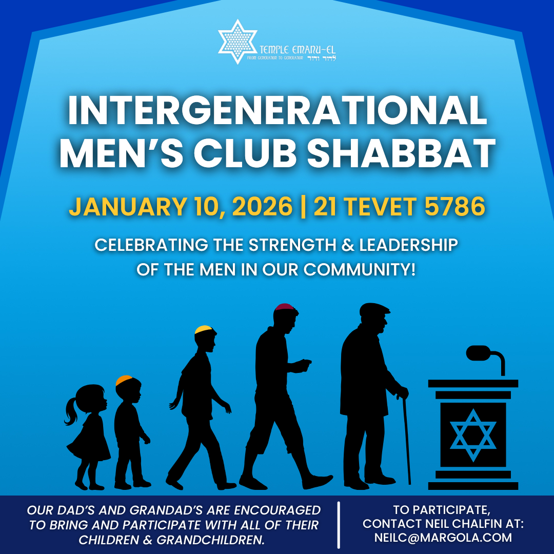 Please join us for Men’s Club Shabbat which will celebrate the strength & leadership of the men in our community. Our dad’s and grandad’s are encouraged to bring and participate with all of their children & grandchildren.